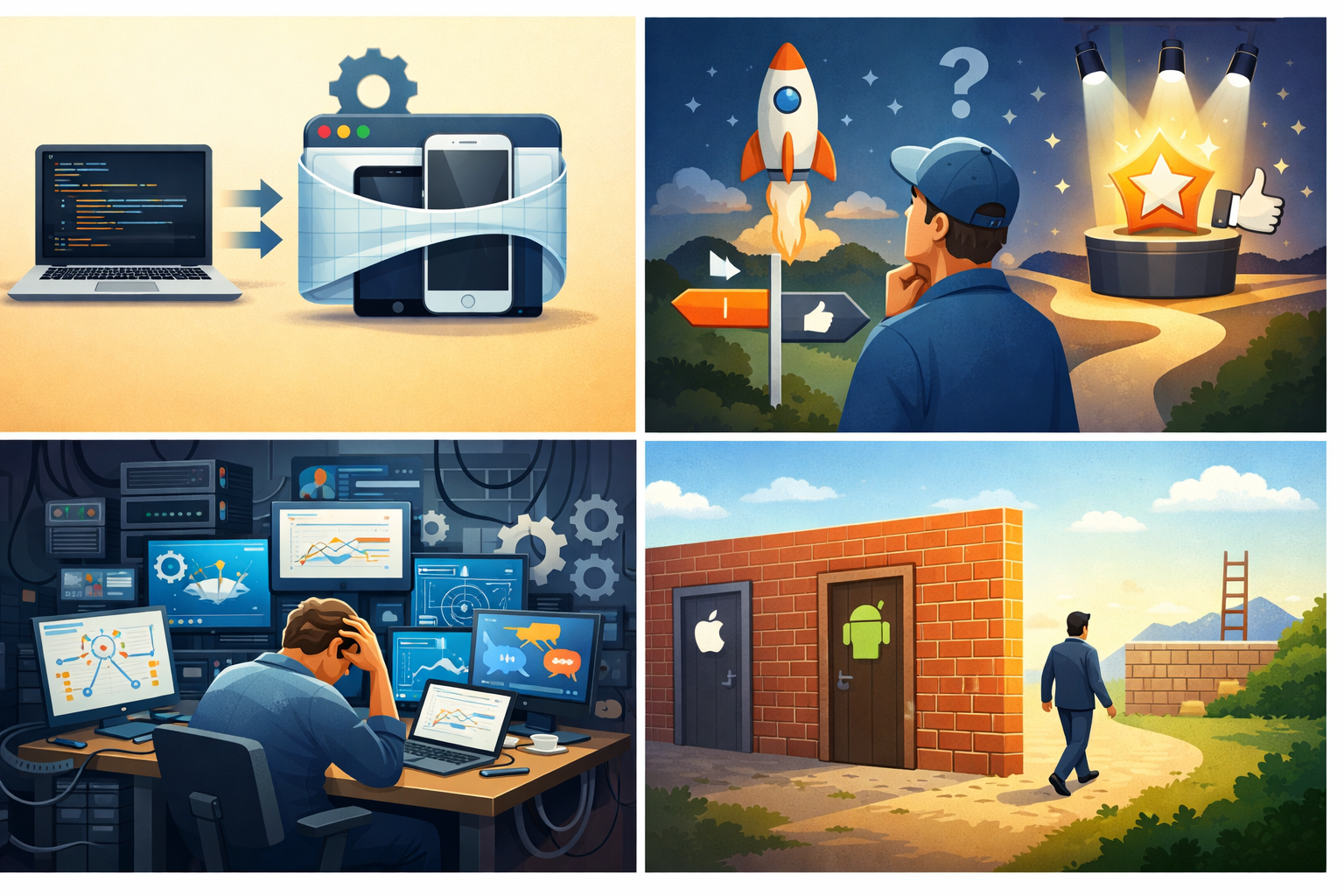 Six months later the team is fighting build issues, weird bugs on one device only, and every release feels risky.