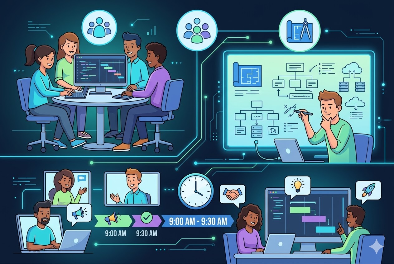 Setting fixed times for communication helps teams stay aligned without constant interruptions. Regular check-ins, like weekly reviews or technical discussions, allow issues to be addressed quickly while keeping development work focused.